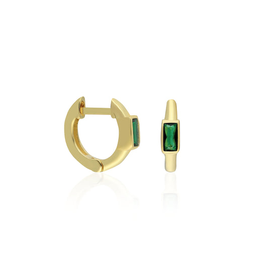 Green Baguette Mini Huggie Earring