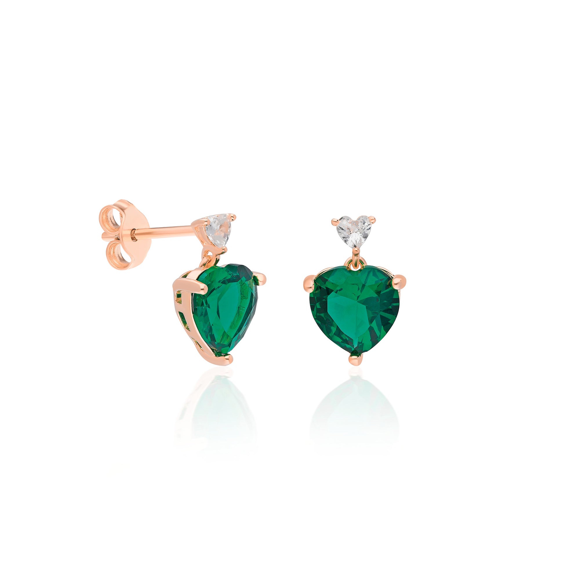 925 Sterling Silver handcrafted earring with green heart shaped zircon gemstone. You can buy it as Gold Plated, Rose Gold Plated or Rhodium Plated.
