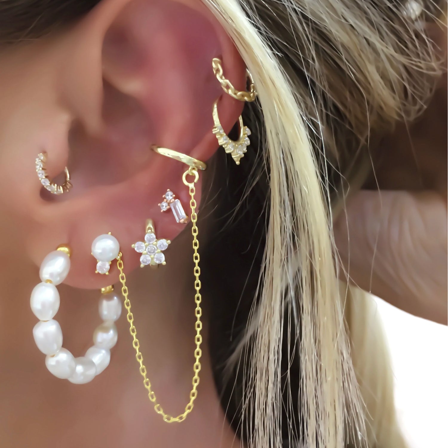 14K Gold handcrafted piercing with zircon gemstones.