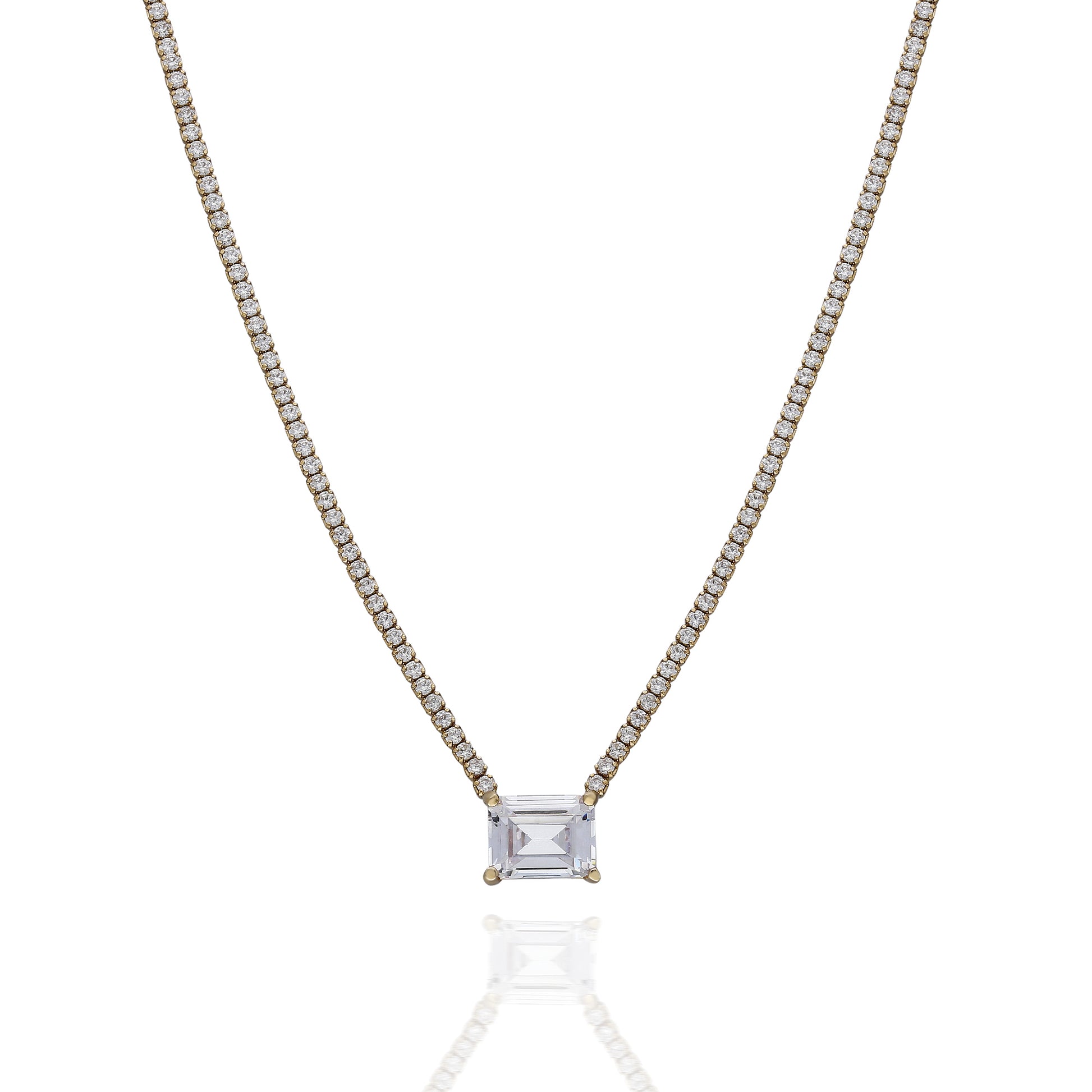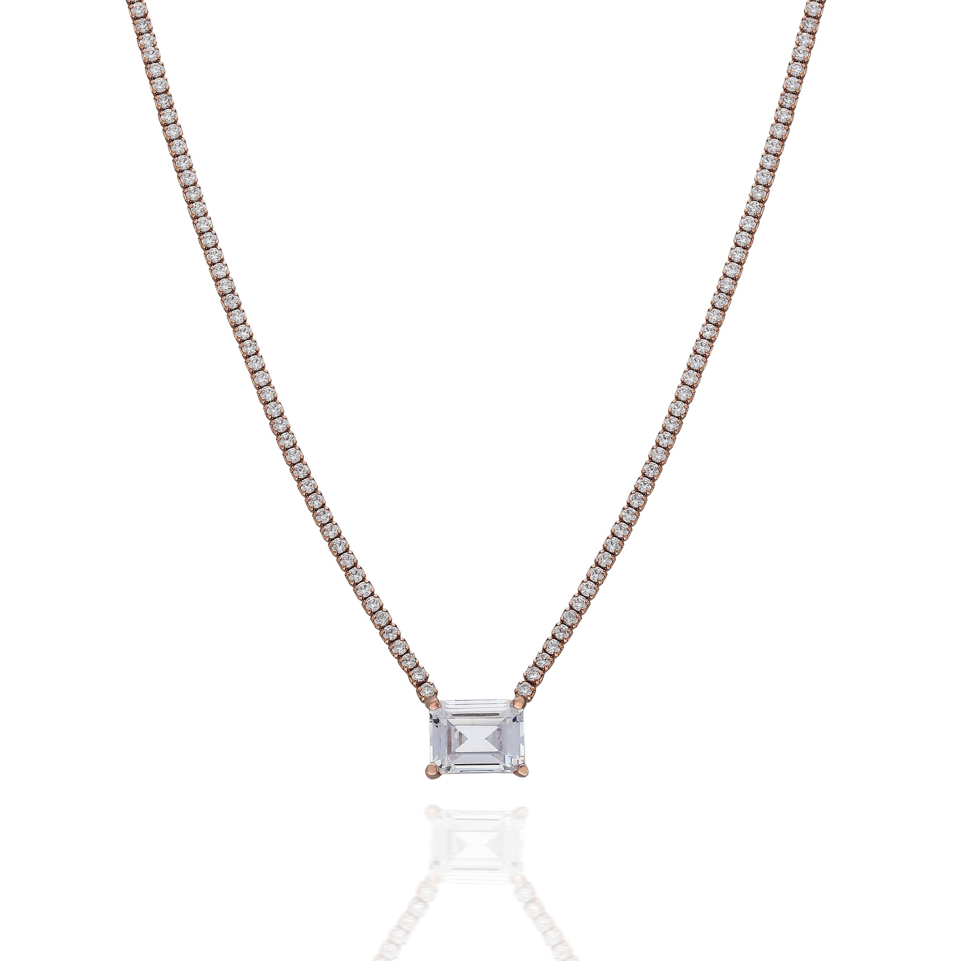 925 Sterling Silver handcrafted necklace with zircon gemstones. You can buy it as Gold Plated, Rose Gold Plated or Rhodium Plated.